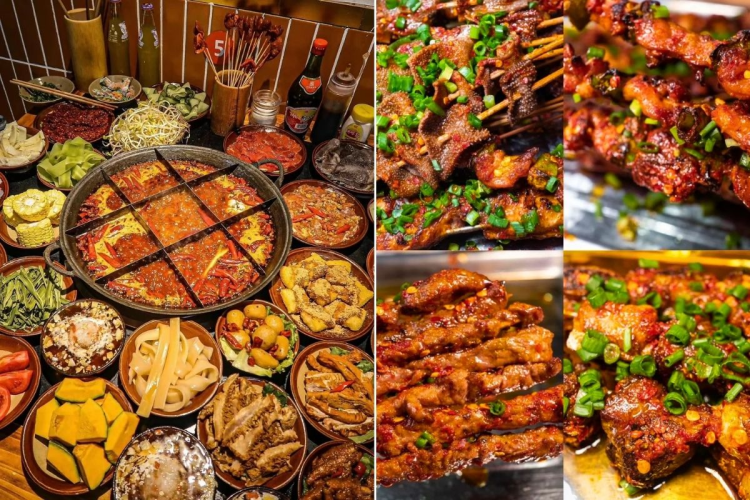 麻辣火鍋、冷鍋串串、缽缽雞、回鍋肉、夫妻肺片、粉蒸牛肉、峨眉豆腐宴、藏族土司宴。